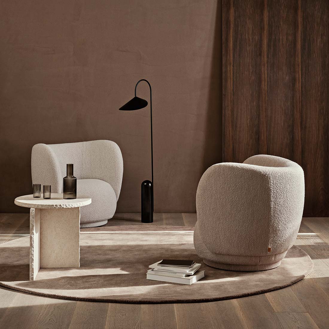 【日本正規販売品】ferm LIVING ファームリビング Rico Lounge Chair リコラウンジチェア ブークレ生地 オフホワイト ソファ 一人掛け 北欧 椅子